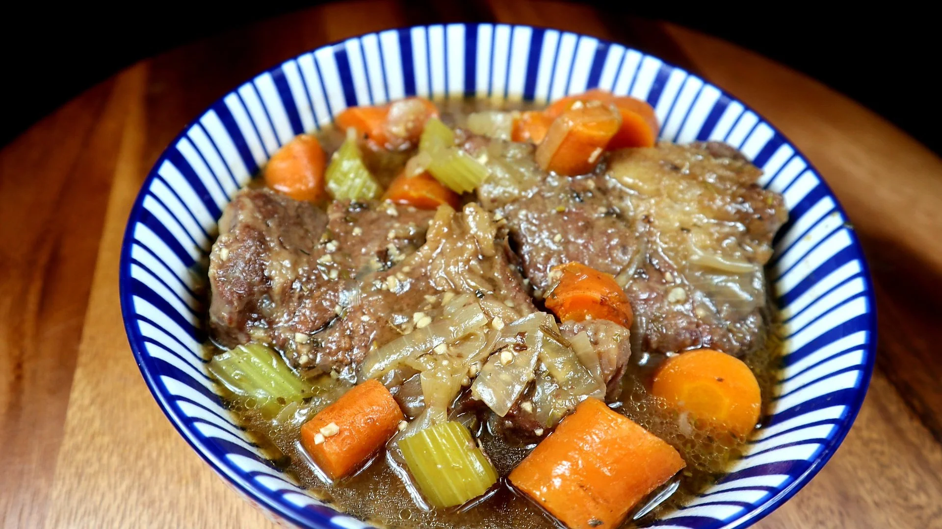 Reduce heat to medium and add 1 cup of beef broth, and using a wooden spoon, scrape buts from bottom of pan. Add in the onions, carrots and celery to pot. Cook ingredients down till they start to soften, add garlic and cook till fragrant.